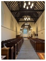 The church is disproportionately large compared to the size of the village. It boasts the fact that WH Smith, founder of the newsagents and stationery chain, is buried in the churchyard and inside has a wooden chest which travelled with Lord Cardigan during the ill-fated charge of the Light Brigade. It also has a beautiful painted ceiling and an organ. In fact one of our members spent some time chatting with the organist before she began to play.