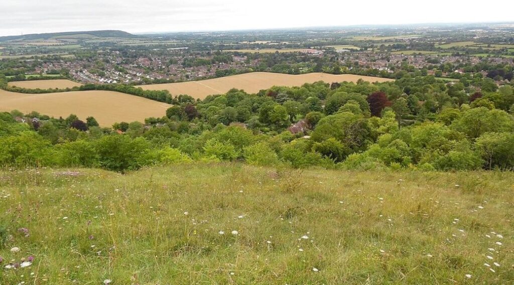 Undulating Chiltern scenery. Includes part of the Ridgeway and Chiltern Way trails, wooded hills via Loosley Row, Lacey Green windmill and Whiteleaf Hill.